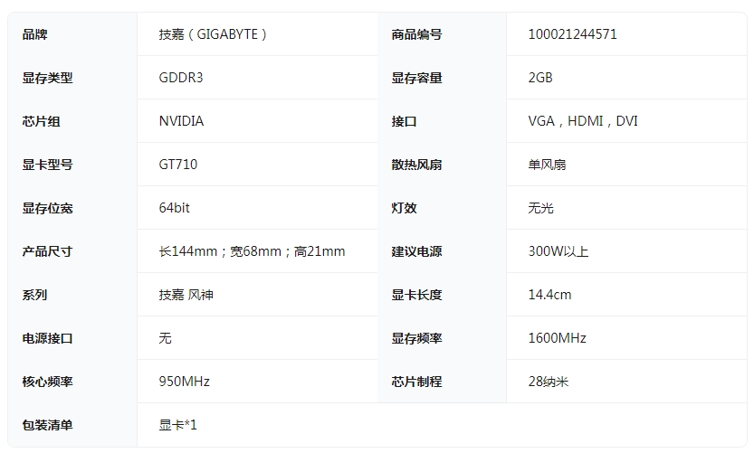技嘉(GIGABYTE)GeForce GT 710 2G DDR3 显卡