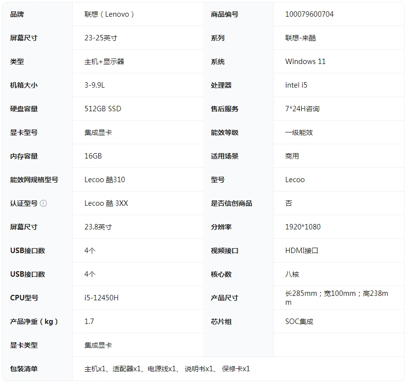 联想(Lenovo)来酷商务台式机电脑主机23.8英寸显示器