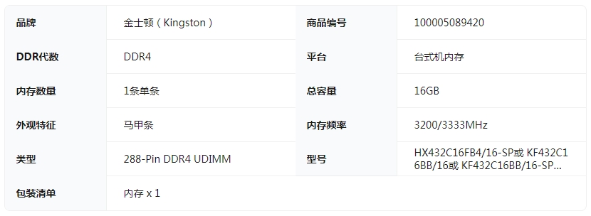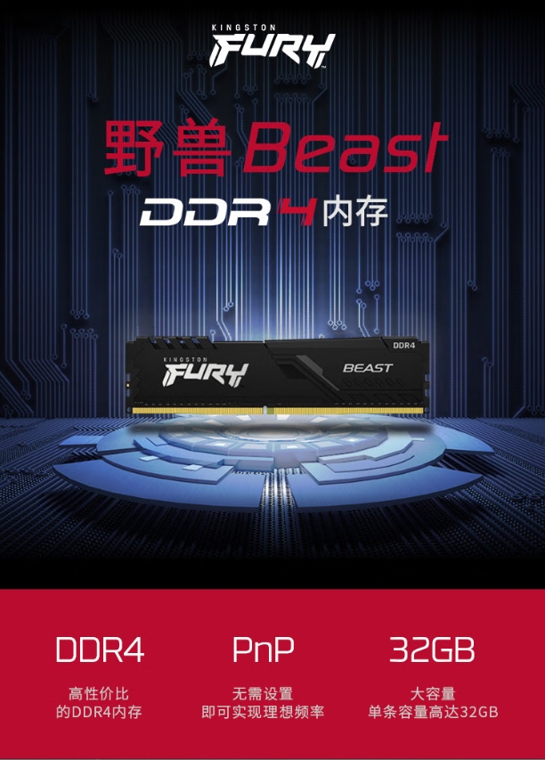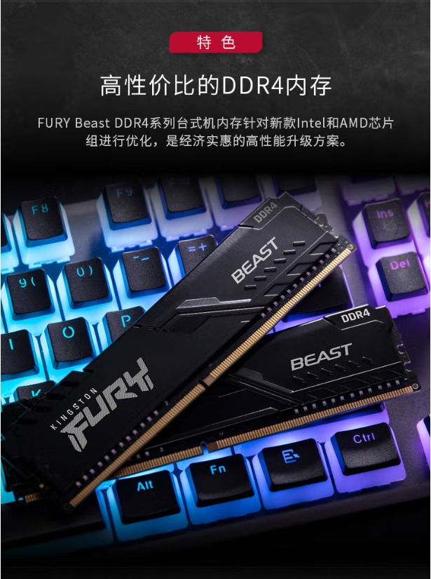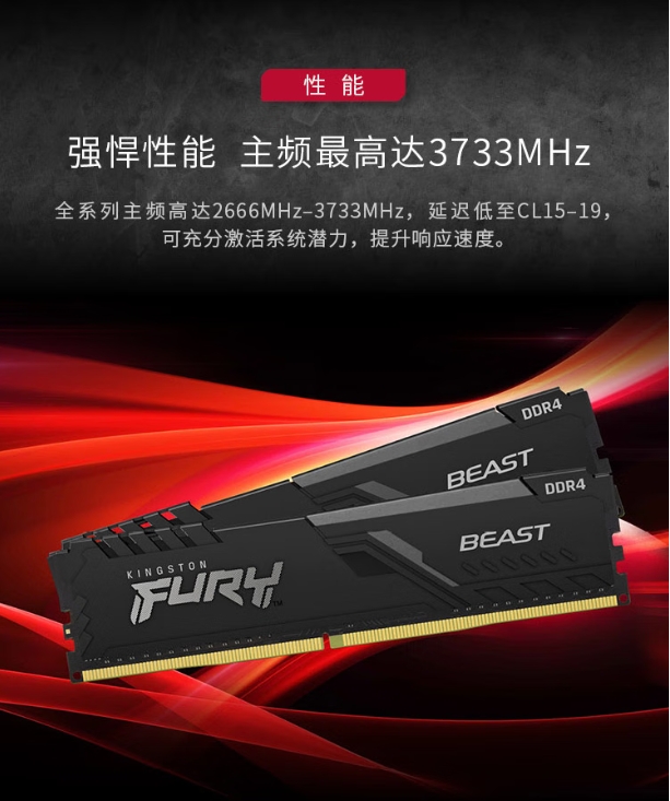 金士顿(Kingston)FURY 16GB DDR4 3200 C16 台式机内存条 Beast野兽系列 骇客神条