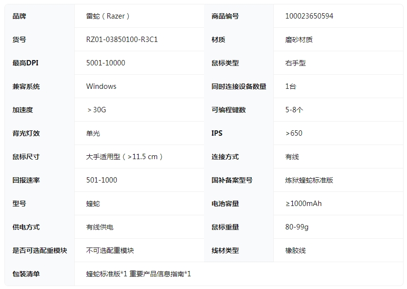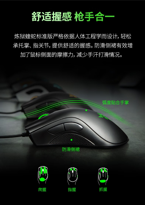 雷蛇(Razer)炼狱蝰蛇标准版有线鼠标 人体工学 电竞游戏 右手通用型 吃鸡/LOL/CSGO游戏鼠标