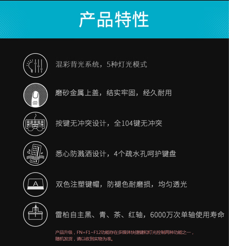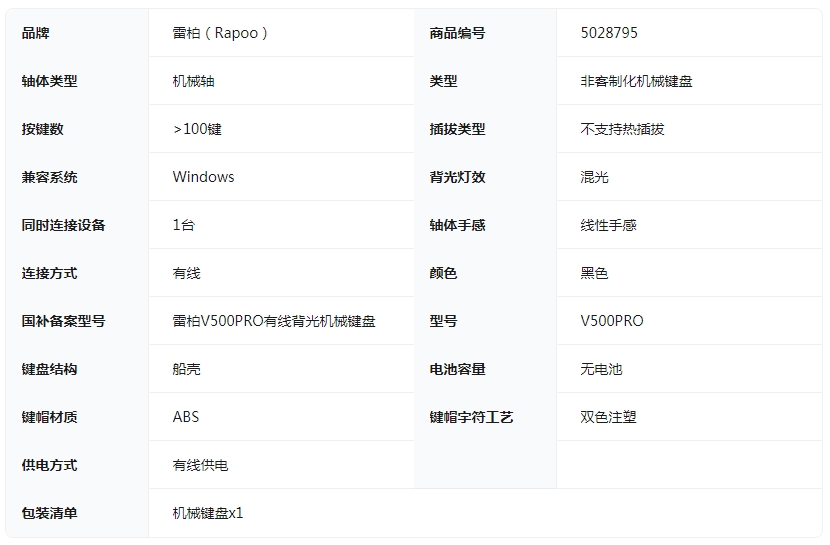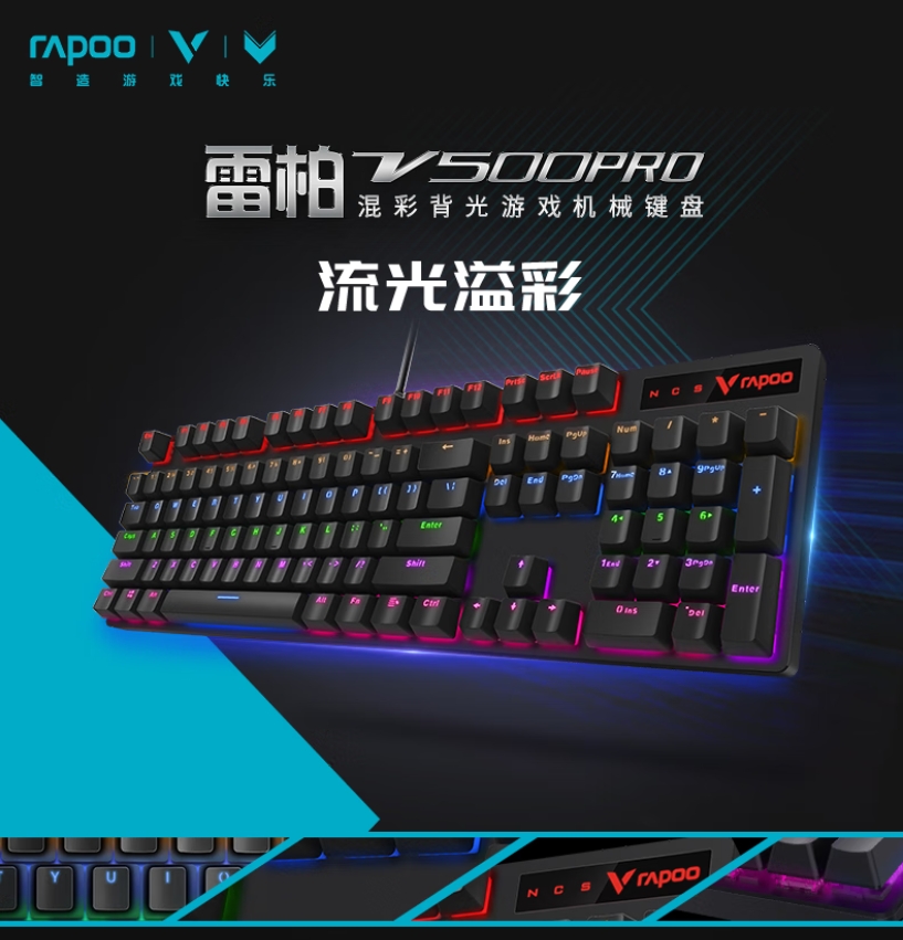 雷柏(Rapoo) V500PRO 有线背光机械键盘 104键全尺寸