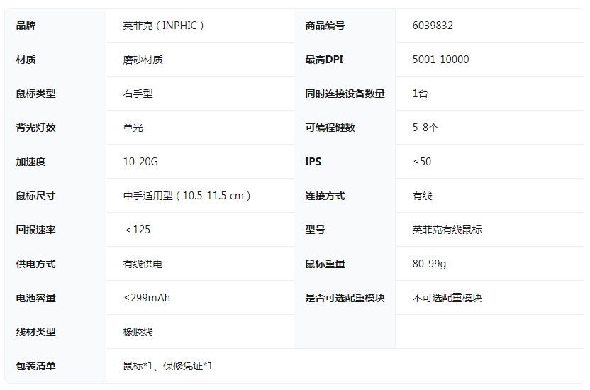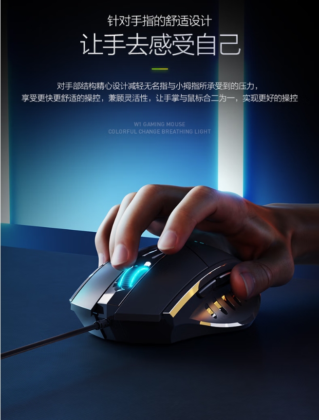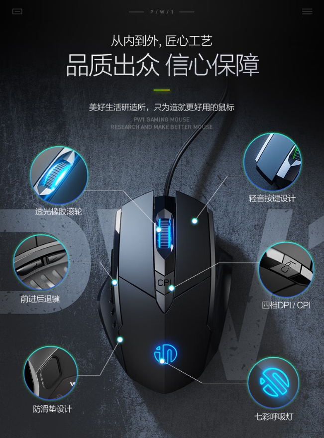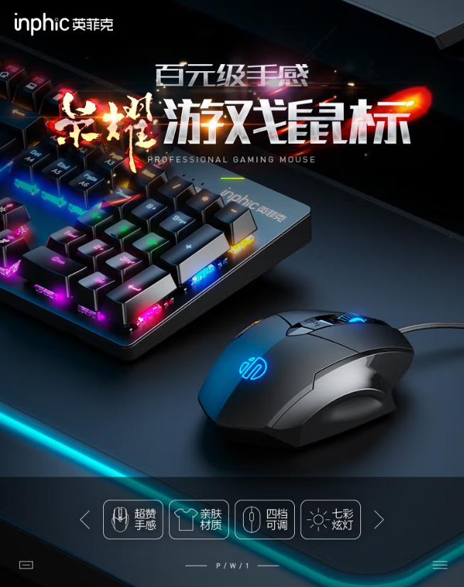 英菲克(INPHIC)W1 有线游戏鼠标宏定义人体工学轻音家用