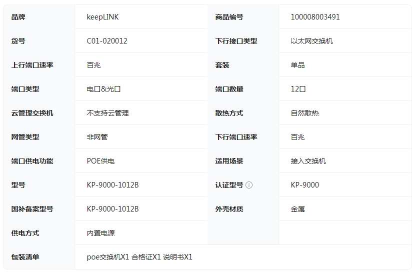 keepLINKKP-9000-1012B 标准POE交换机百兆12口分离器工程项目适用