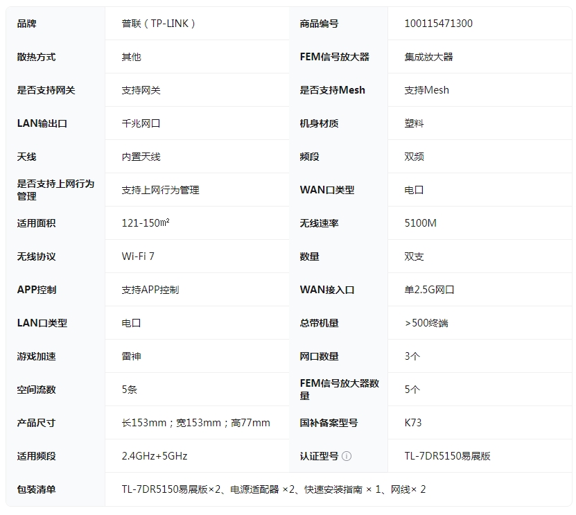 普联(TP-LINK) 全屋WiFi7 子母路由器 BE5100分布式