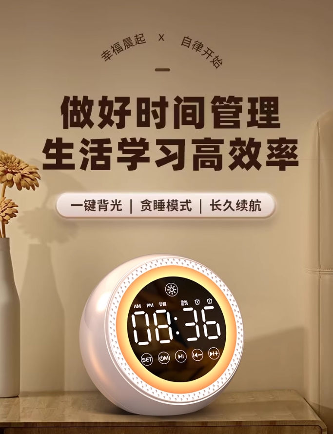 智能闹钟蓝牙音箱多功能护眼夜灯学生不迟到神器连接电脑低音炮