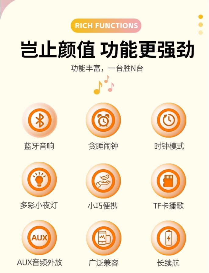 小音响收到,漂亮,可爱,能当时钟看,能当闹钟用,能听歌,能当小夜灯。非常爱。推荐喜欢的朋友可以下手,便宜实惠。